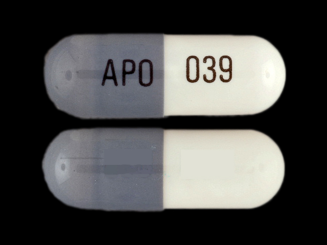 This medication is a White;gray Capsule 22 mm, Capsule with imprint "APO;039". It contains Etodolac 200 mg; of Etodolac[etodolac];. This belongs to the Nonsteroidal anti-inflammatory drug pharmacologic class. It is manufactured by Apotex Corp.. For details please contact your physician.