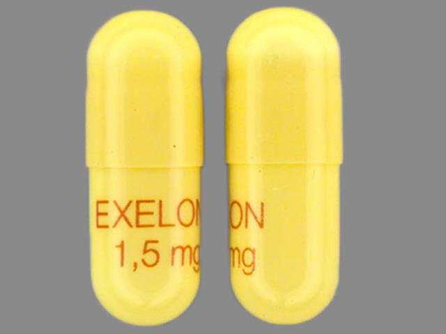 This medication is a Yellow Capsule 18 mm, Capsule with imprint "Exelon;1;5mg". It contains Rivastigmine tartrate 1.5 mg; of Rivastigmine tartrate[rivastigmine];. This belongs to the Cholinesterase inhibitor pharmacologic class. It is manufactured by Novartis Pharmaceuticals Corporation. For details please contact your physician.