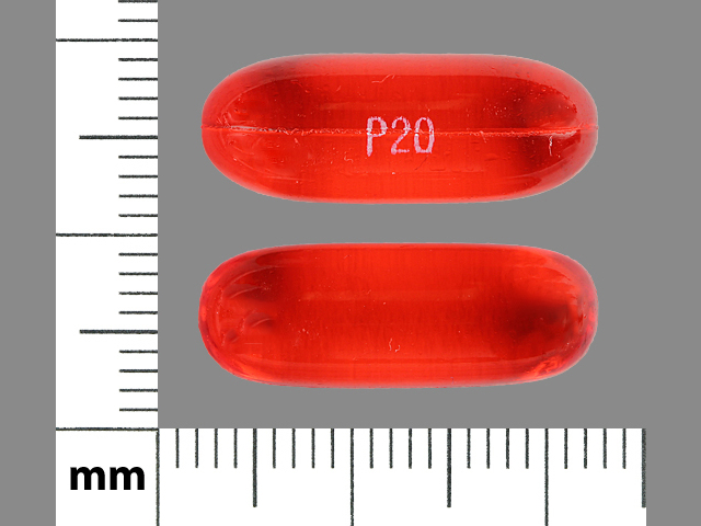 This medication is an Orange Oval 20 mm, Liquid filled capsule with imprint "P20". It contains Docusate sodium 250 mg; of Docusate sodium[docusate];. It is manufactured by Rugby Laboratories, Inc.. For details please contact your physician.