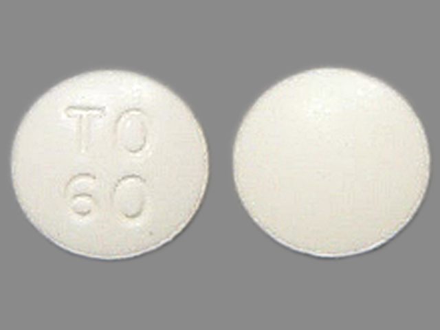 This medication is a White Round 9 mm, Tablet with imprint "TO;60". It contains Toremifene citrate 60 mg; of Toremifene citrate[toremifene];. This belongs to the Estrogen agonist/antagonist pharmacologic class. It is manufactured by GTx, Inc.. For details please contact your physician.