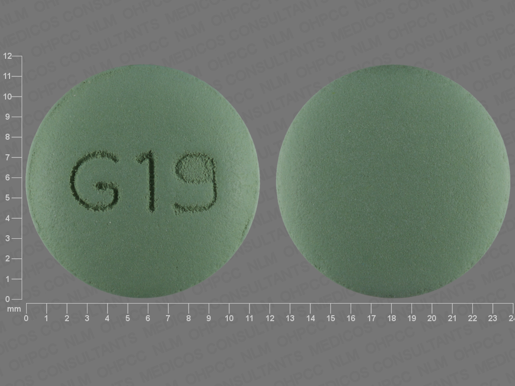 This medication is a Green Round 11 mm, Extended release tablet with imprint "G19". It is manufactured by Glenmark Generics Inc., USA. For details please contact your physician.