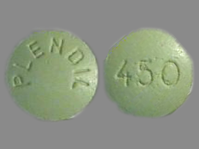 This medication is a Green Round 11 mm, Extended release tablet with imprint "450;PLENDIL". It contains Felodipine 2.5 mg; of Felodipine[felodipine];. It is manufactured by Ranbaxy Pharmaceuticals Inc. For details please contact your physician.