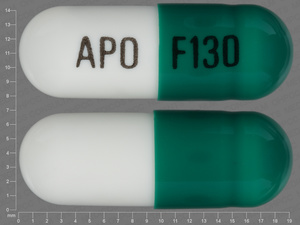 This medication is a White, green Capsule 19 mm, Capsule with imprint "APO;F130". It is manufactured by Apotex Corp.. For details please contact your physician.