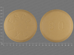 This medication is a Yellow Round 10 mm, Extended release tablet with imprint "LESCOL;XL;80". It contains 80 mg of Fluvastatin sodium 80 mg. It is manufactured by Novartis Pharmaceuticals Corporation. For details please contact your physician.