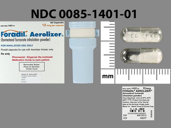This medication is a White Capsule 16 mm, Capsule with imprint "CG;FXF". It contains Formoterol fumarate 12 ug;lactose 25 mg; of Formoterol fumarate[formoterol];lactose[];. It is manufactured by Merck Sharp & Dohme Corp.. For details please contact your physician.