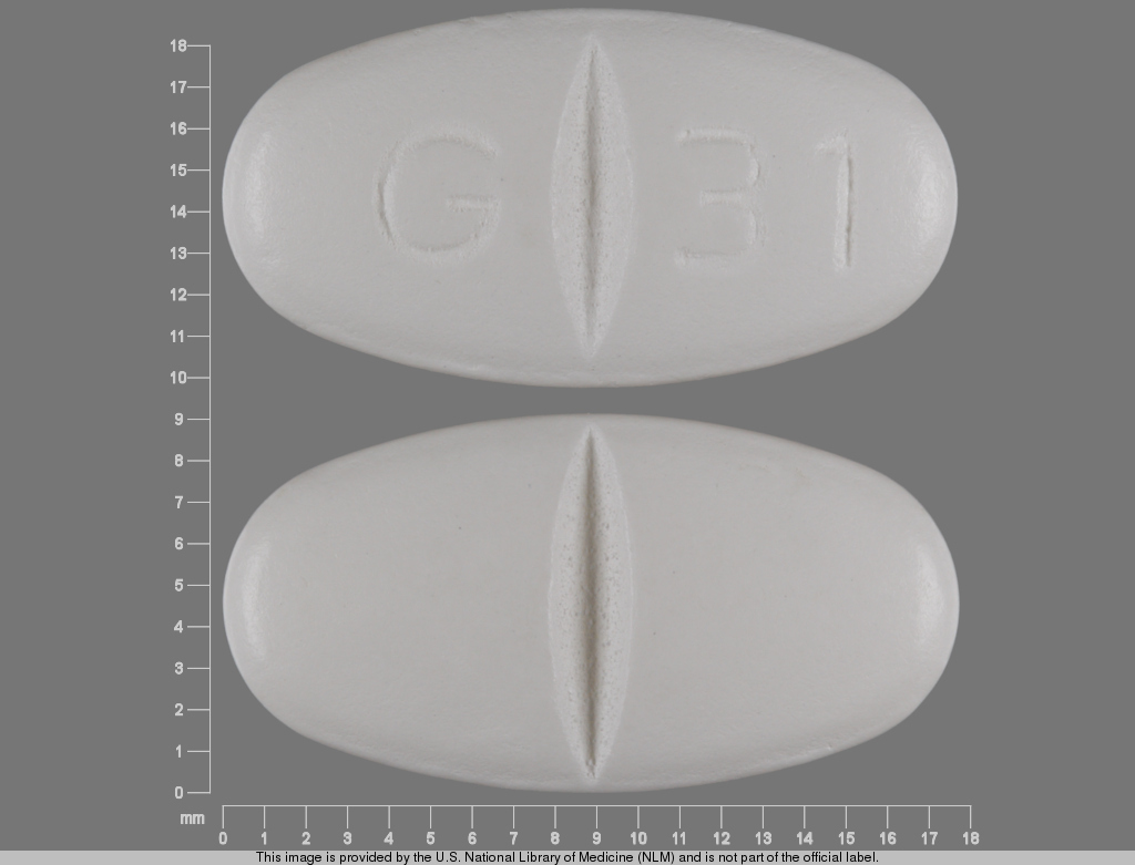 This medication is a White Oval 17 mm, Tablet with imprint "G;31". It contains Gabapentin 600 mg; of Gabapentin[gabapentin];. This belongs to the Decreased central nervous system disorganized electrical activity pharmacologic class. It is manufactured by Glenmark Pharmaceuticals Inc., USA. For details please contact your physician.
