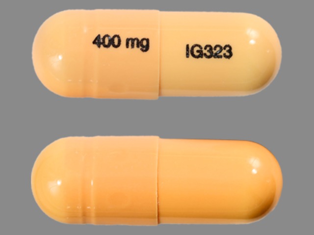 This medication is an Orange Capsule 22 mm, Capsule with imprint "IG323;400mg". It contains Gabapentin 400 mg; of Gabapentin[gabapentin];. This belongs to the Decreased central nervous system disorganized electrical activity pharmacologic class. It is manufactured by Aphena Pharma Solutions - Tennessee, Inc.. For details please contact your physician.