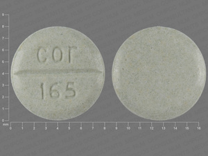 This medication is a Green Round 8 mm, Tablet with imprint "cor;165". It is manufactured by Sandoz Inc. For details please contact your physician.