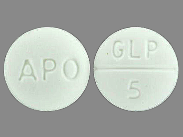 This medication is a White Round 6 mm, Tablet with imprint "APO;GLP;5". It contains Glipizide 5 mg; of Glipizide[glipizide];. This belongs to the Sulfonylurea pharmacologic class. It is manufactured by Apotex Corp.. For details please contact your physician.