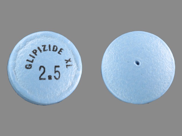 This medication is a Blue Round 8 mm, Extended release tablet with imprint "GLIPIZIDE;XL;2;5". It contains Glipizide 2.5 mg; of Glipizide[glipizide];. This belongs to the Sulfonylurea pharmacologic class. It is manufactured by Greenstone LLC. For details please contact your physician.