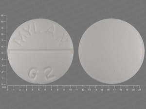 This medication is a White Round 10 mm, Tablet with imprint "MYLAN;G2". It contains 10 mg of Glipizide 10 mg. It is manufactured by Mylan Pharmaceuticals Inc.. For details please contact your physician.