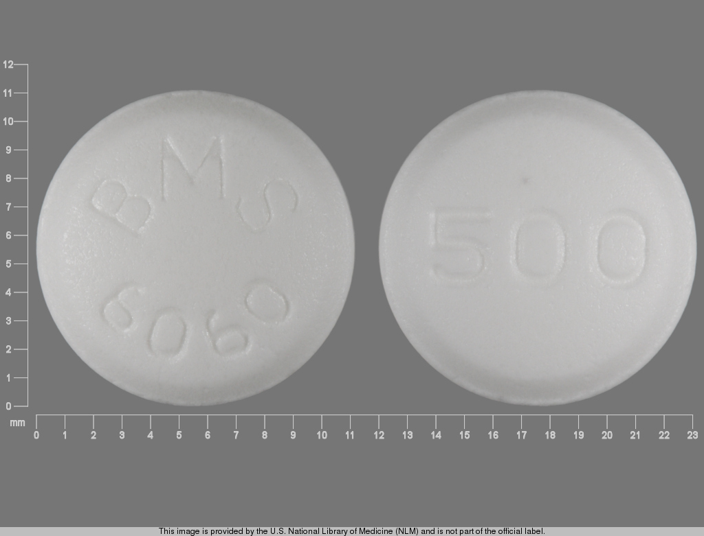 This medication is a White Round 11 mm, Film coated tablet with imprint "BMS;6060;500". It contains Metformin hydrochloride 500 mg; of Metformin hydrochloride[metformin];. This belongs to the Biguanide pharmacologic class. It is manufactured by Bristol-Myers Squibb Company. For details please contact your physician.