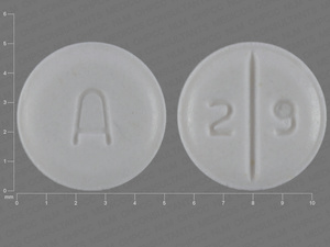 This medication is a White Round 5 mm, Tablet with imprint "2;9;A". It is manufactured by Aurobindo Pharma Limited. For details please contact your physician.