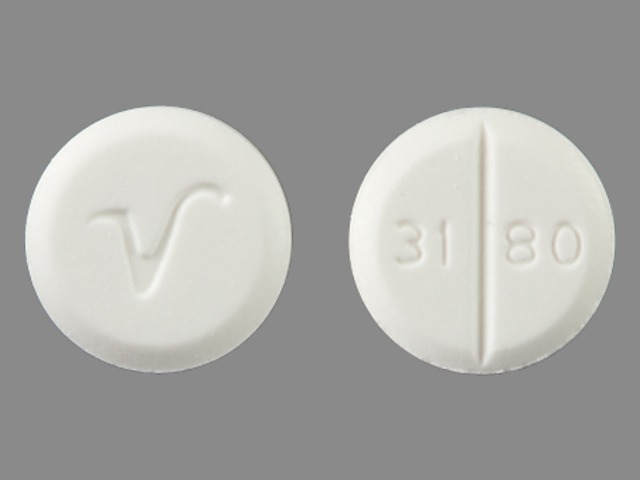 This medication is a White Round 7 mm, Tablet with imprint "3180;V". It contains Glycopyrrolate 1 mg; of Glycopyrrolate[glycopyrronium];. This belongs to the Anticholinergic pharmacologic class. It is manufactured by Qualitest Pharmaceuticals. For details please contact your physician.