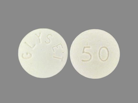 This medication is a White Round 7 mm, Film coated tablet with imprint "GLYSET;50". It contains Miglitol 50 mg; of Miglitol[miglitol];. It is manufactured by Pharmacia and Upjohn Company LLC. For details please contact your physician.