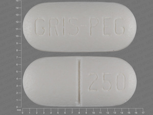 This medication is a White Oval 16 mm, Tablet with imprint "GRIS;PEG;250". It contains 250 mg of Griseofulvin 250 mg. It is manufactured by Pedinol Pharmacal, Inc.. For details please contact your physician.