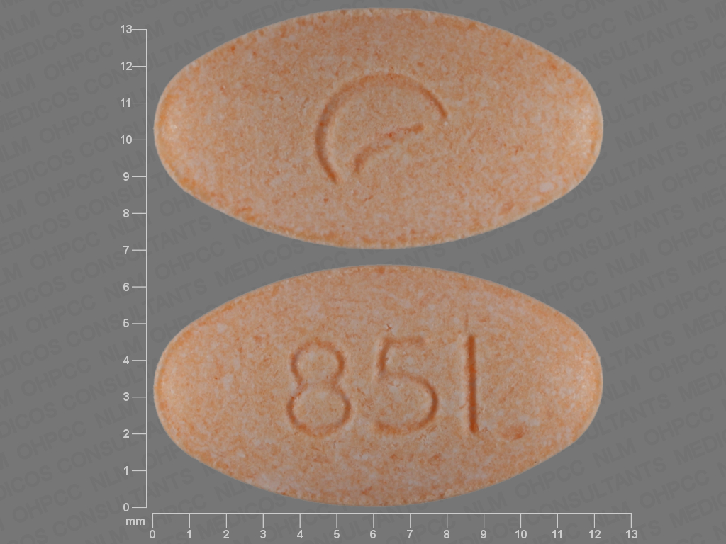 This medication is an Orange Oval 12 mm, Extended release tablet with imprint "851". It contains Guanfacine hydrochloride 2 mg; of Guanfacine hydrochloride[guanfacine];. This belongs to the Central alpha-2 adrenergic agonist pharmacologic class. It is manufactured by Actavis Pharma, Inc.. For details please contact your physician.