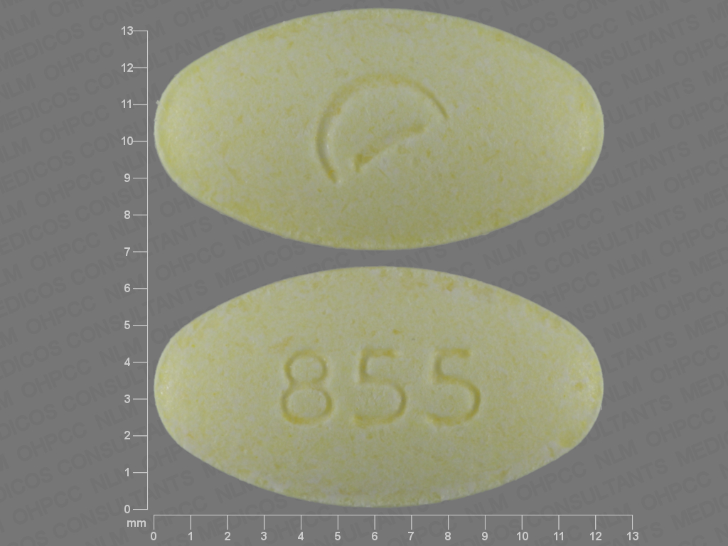 This medication is a Yellow Oval 12 mm, Extended release tablet with imprint "855". It contains Guanfacine hydrochloride 4 mg; of Guanfacine hydrochloride[guanfacine];. This belongs to the Central alpha-2 adrenergic agonist pharmacologic class. It is manufactured by Actavis Pharma, Inc.. For details please contact your physician.