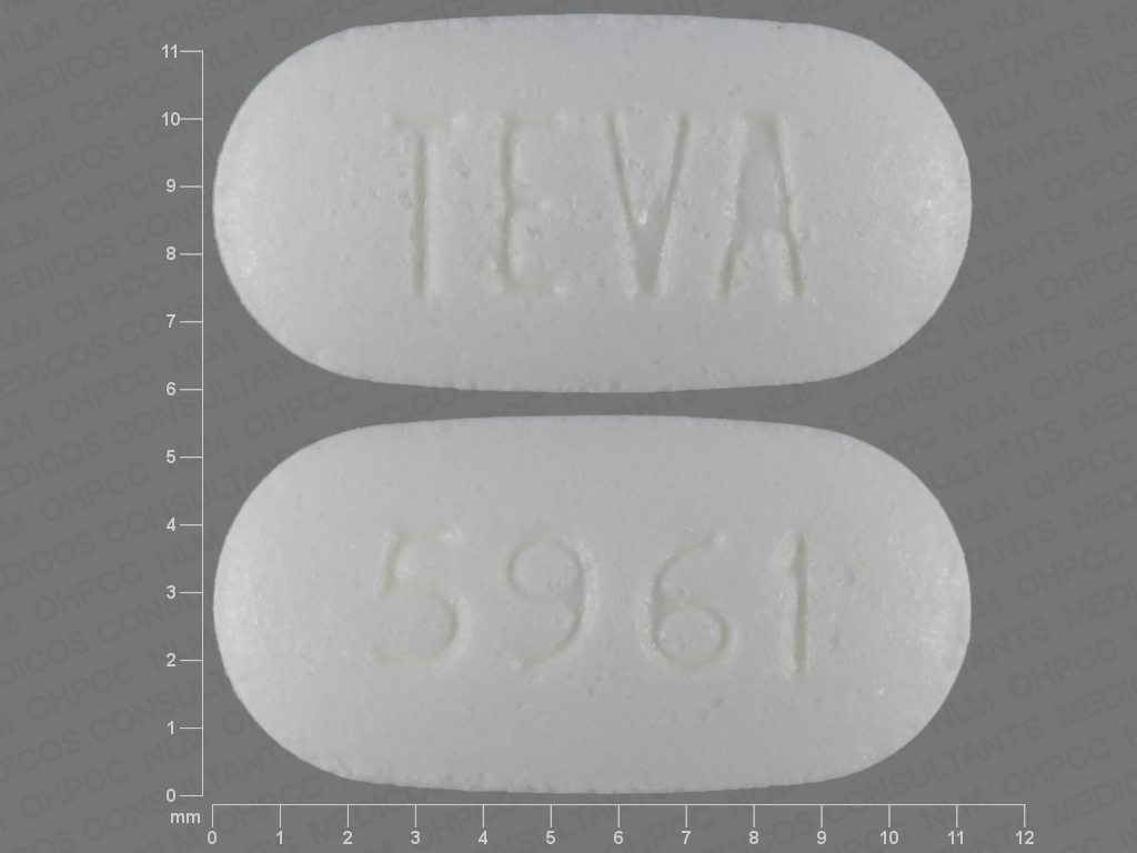 This medication is a White Oval 11 mm, Extended release tablet with imprint "TEVA;5961". It is manufactured by Teva Pharmaceuticals USA Inc. For details please contact your physician.