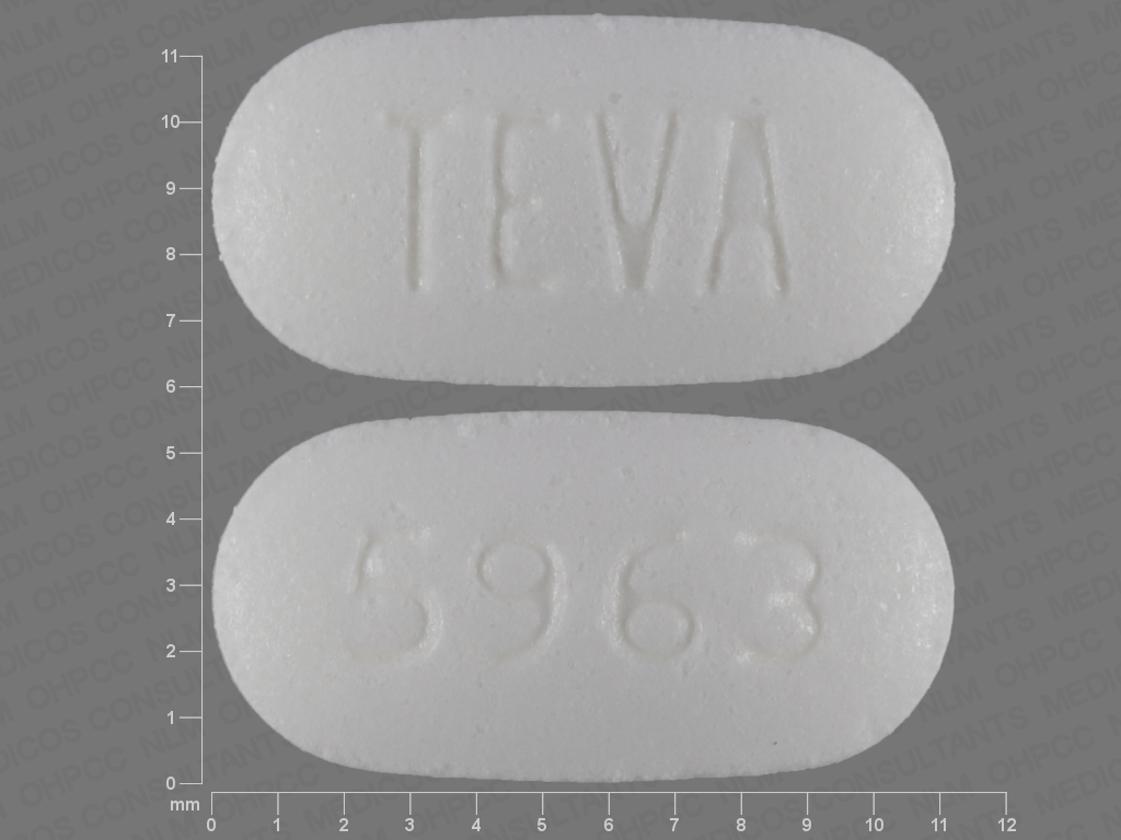 This medication is a White Oval 11 mm, Extended release tablet with imprint "TEVA;5963". It is manufactured by Teva Pharmaceuticals USA Inc. For details please contact your physician.