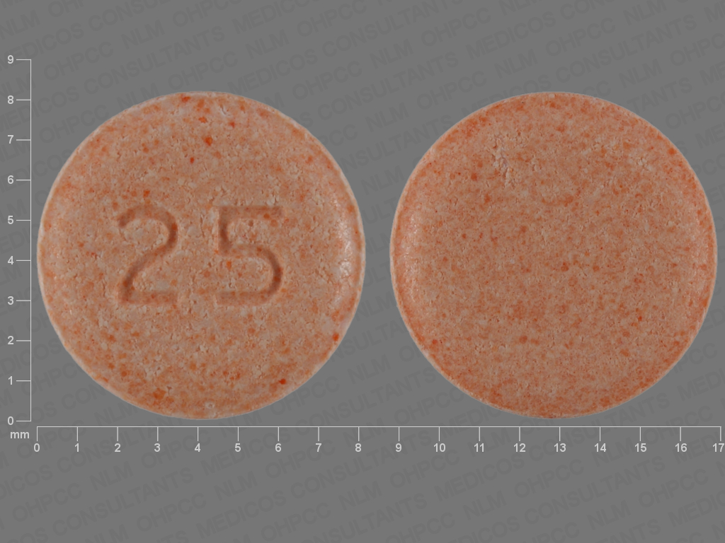 This medication is an Orange Round 8 mm, Tablet with imprint "25". It contains Hydralazine hydrochloride 25 mg; of Hydralazine hydrochloride[hydralazine];. This belongs to the Arteriolar vasodilator pharmacologic class. It is manufactured by Strides Pharma Science Limited. For details please contact your physician.