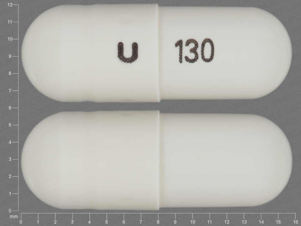 This medication is a White Capsule 16 mm, Capsule with imprint "U;130". It contains Hydrochlorothiazide 12.5 mg; of Hydrochlorothiazide[hydrochlorothiazide];. This belongs to the Thiazide diuretic pharmacologic class. It is manufactured by Unichem Pharmaceuticals (USA), Inc.. For details please contact your physician.