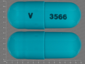 This medication is a Blue Capsule 14 mm, Capsule with imprint "V;3566". It contains 12.5 mg of Hydrochlorothiazide 12.5 mg. It is manufactured by Qualitest Pharmaceutical, Inc.. For details please contact your physician.