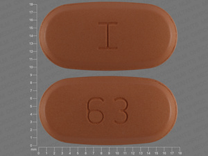 This medication is a Brown Oval 18 mm, Tablet with imprint "I;63". It is manufactured by Aurobindo Pharma Limited. For details please contact your physician.