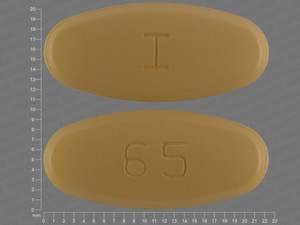 This medication is a Yellow Oval 22 mm, Tablet with imprint "I;65". It is manufactured by Aurobindo Pharma Limited. For details please contact your physician.