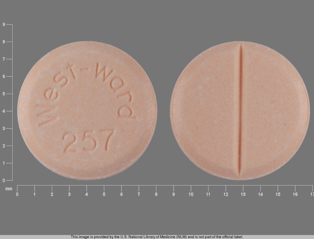 This medication is an Orange Round 8 mm, Tablet with imprint "Westward;257". It contains Hydrochlorothiazide 50 mg; of Hydrochlorothiazide[hydrochlorothiazide];. This belongs to the Thiazide diuretic pharmacologic class. It is manufactured by West-ward Pharmaceutical Corp. For details please contact your physician.