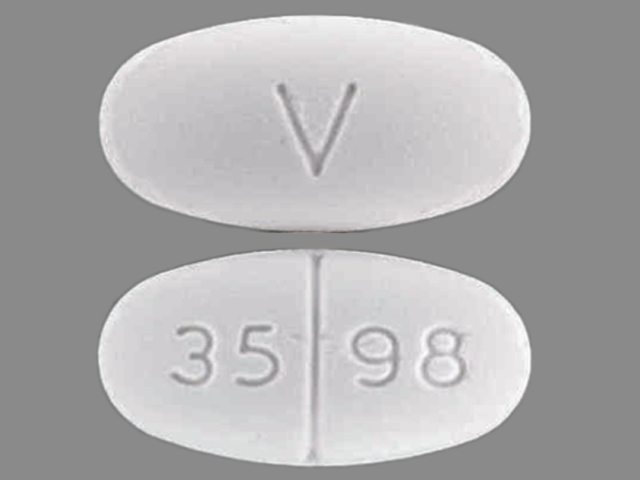 This medication is a White Oval 18 mm, Tablet with imprint "3598;V". It contains Hydrocodone bitartrate 10 mg / acetaminophen 660 mg of Hydrocodone bitartrate[hydrocodone] / acetaminophen[acetaminophen]. It is manufactured by Qualitest Pharmaceuticals. For details please contact your physician.