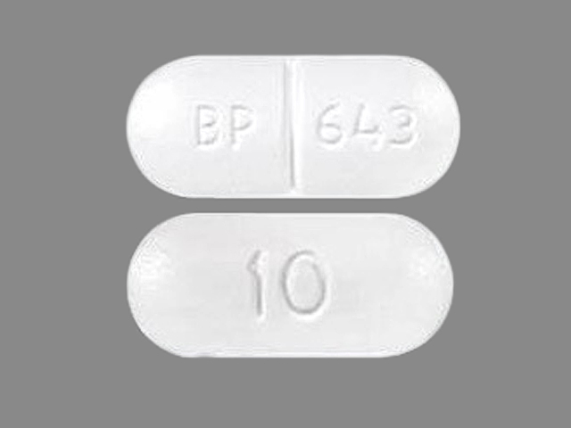 This medication is a White Oval 6 mm, Tablet with imprint "BP;643;10". It contains Hydrocodone bitartrate 10 mg;acetaminophen 300 mg; of Hydrocodone bitartrate[hydrocodone];acetaminophen[acetaminophen];. It is manufactured by Par Pharmaceutical, Inc.. For details please contact your physician.
