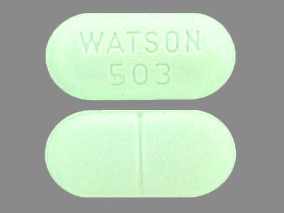 This medication is a Green Oval 15 mm, Tablet with imprint "WATSON;503". It contains Hydrocodone bitartrate 10 mg;acetaminophen 650 mg; of Hydrocodone bitartrate[hydrocodone];acetaminophen[acetaminophen];. It is manufactured by Actavis Pharma, Inc.. For details please contact your physician.