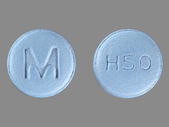 This medication is a Blue Round 8 mm, Film coated tablet with imprint "M;H50". It contains Hydroxyzine hydrochloride 50 mg; of Hydroxyzine hydrochloride[hydroxyzine];. This belongs to the Antihistamine pharmacologic class. It is manufactured by Mylan Pharmaceuticals Inc.. For details please contact your physician.