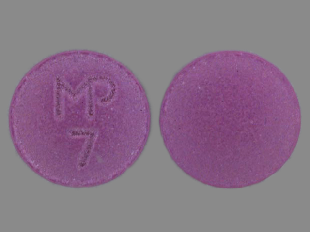 This medication is a Purple Round 6 mm, Film coated tablet with imprint "MP;7". This belongs to the Antihistamine pharmacologic class. It is manufactured by Mutual Pharmaceutical Company, Inc.. For details please contact your physician.