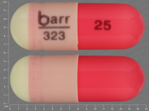 This medication is a Yellow, red Capsule 16 mm, Capsule with imprint "barr;323;25". It contains 25 mg of Hydroxyzine pamoate 25 mg. It is manufactured by Mylan Institutional Inc.. For details please contact your physician.