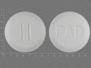 This medication is a White Round 7 mm, Unknown with imprint "H;PAD". It contains 0.125 mg of Hyoscyamine sulfate 0.125 mg. It is manufactured by Paddock Laboratories, Inc.. For details please contact your physician.