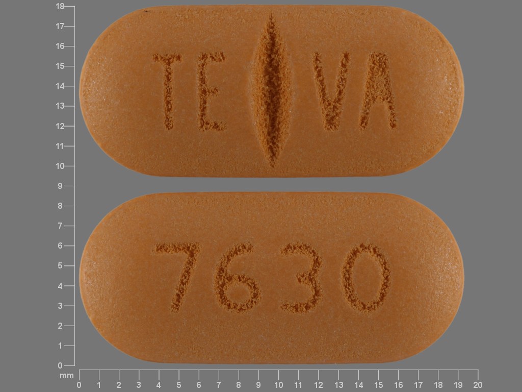 This medication is an Orange Oval 19 mm, Film coated tablet with imprint "TE;VA;7630". It contains Imatinib mesylate 400 mg; of Imatinib mesylate[imatinib];. This belongs to the Kinase inhibitor pharmacologic class. It is manufactured by Teva Pharmaceuticals USA, Inc.. For details please contact your physician.