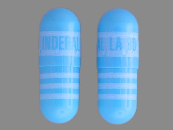 This medication is a Blue Capsule 16 mm, Extended release capsule with imprint "INDERAL;LA;80". It is manufactured by Wyeth Pharmaceuticals, Inc.. For details please contact your physician.