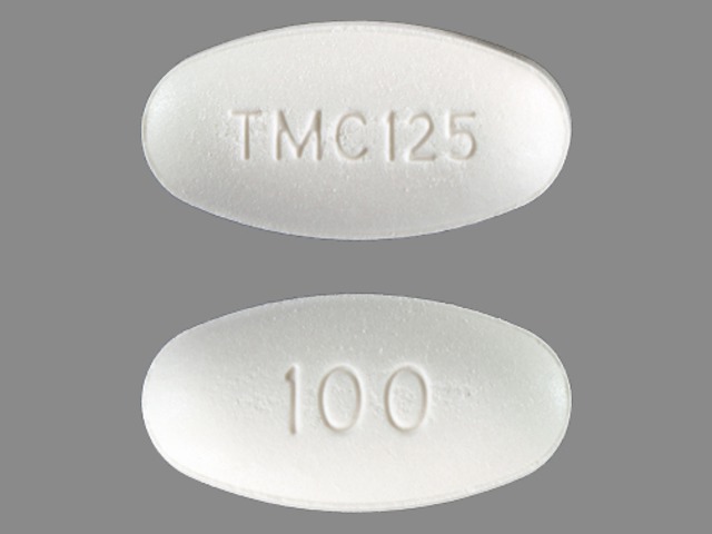 This medication is a White Oval 19 mm, Tablet with imprint "TMC125;100". It contains Etravirine 100 mg; of Etravirine[etravirine];. This belongs to the Human immunodeficiency virus 1 non-nucleoside analog reverse transcriptase inhibitor pharmacologic class. It is manufactured by Janssen Products LP. For details please contact your physician.