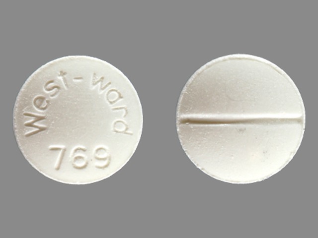 This medication is a White Round 8 mm, Tablet with imprint "West;ward;769". It contains Isosorbide dinitrate 5 mg; of Isosorbide dinitrate[isosorbide dinitrate];. This belongs to the Nitrate vasodilator pharmacologic class. It is manufactured by Hikma Pharmaceuticals USA Inc.. For details please contact your physician.