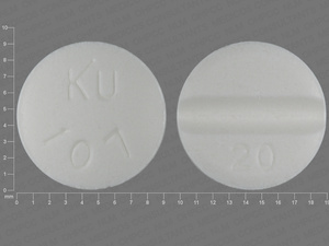 This medication is a White Round 9 mm, Tablet with imprint "KU;107;20". It contains 20 mg of Isosorbide mononitrate 20 mg. It is manufactured by Kremers Urban Pharmaceuticals Inc.. For details please contact your physician.