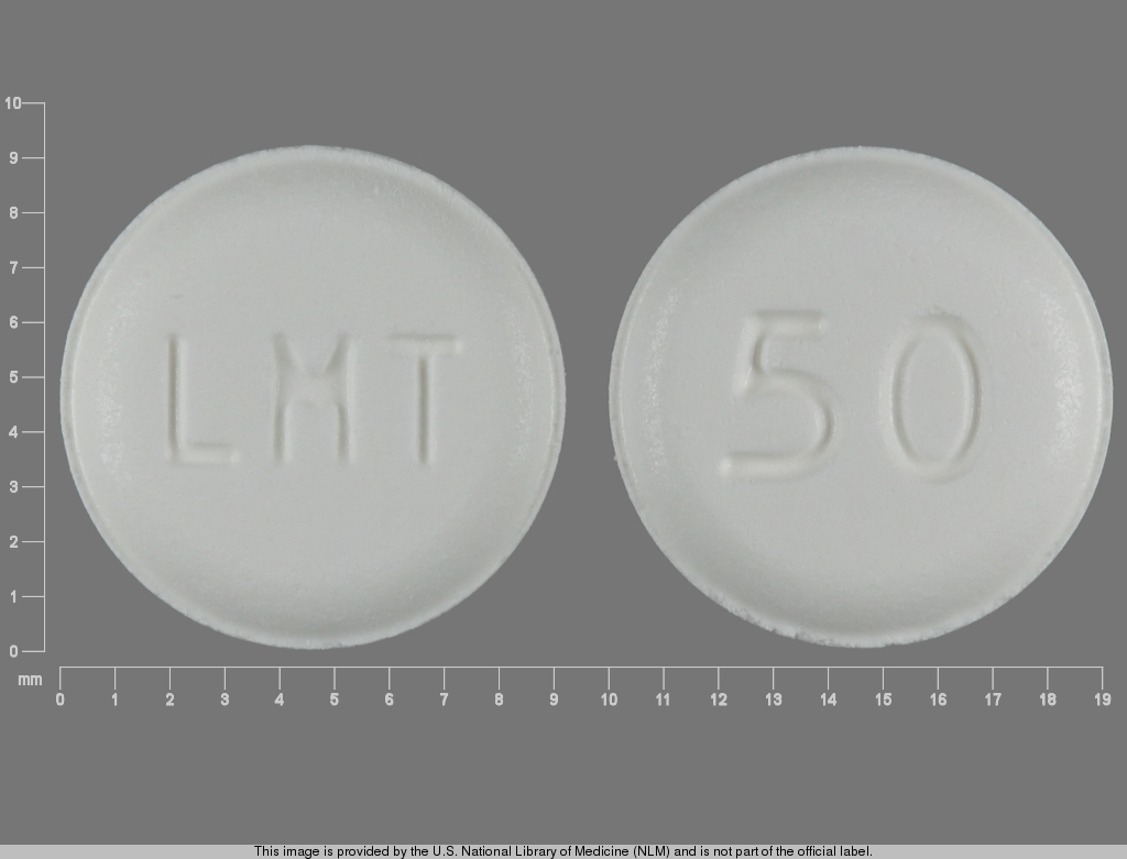 This medication is a White Round 9 mm, Orally disintegrating tablet with imprint "LMT;50". It contains Lamotrigine 50 mg; of Lamotrigine[lamotrigine];. This belongs to the Mood stabilizer pharmacologic class. It is manufactured by GlaxoSmithKline LLC. For details please contact your physician.