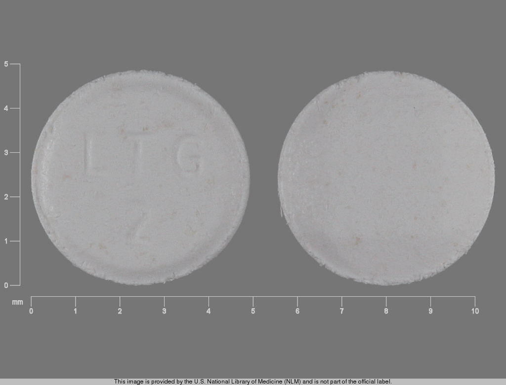 This medication is a White Round 5 mm, Tablet for suspension with imprint "LTG;2". It contains Lamotrigine 2 mg; of Lamotrigine[lamotrigine];. This belongs to the Mood stabilizer pharmacologic class. It is manufactured by GlaxoSmithKline LLC. For details please contact your physician.
