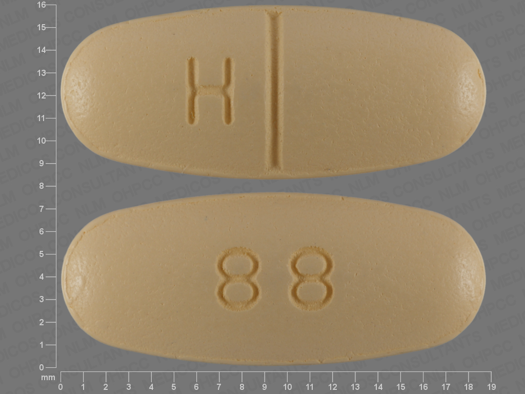 This medication is a Yellow Oval 19 mm, Tablet with imprint "88;H". It is manufactured by Camber Pharmceuticals Inc.. For details please contact your physician.
