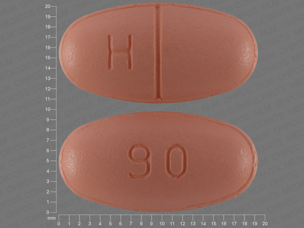 This medication is an Orange Oval 19 mm, Tablet with imprint "90;H". It is manufactured by Camber Pharmceuticals Inc.. For details please contact your physician.