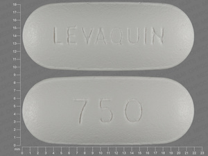 This medication is a White Oval 22 mm, Tablet with imprint "LEVAQUIN;750". It contains 750 mg of Levofloxacin 750 mg. It is manufactured by Janssen Pharmaceuticals, Inc.. For details please contact your physician.