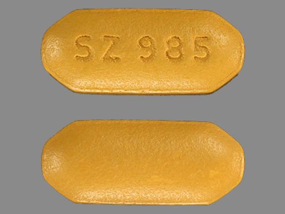 This medication is a Brown Octagon (8 sided) 14 mm, Film coated tablet with imprint "SZ;985". It contains Levofloxacin 250 mg; of Levofloxacin[levofloxacin anhydrous];. This belongs to the Fluoroquinolone antibacterial pharmacologic class. It is manufactured by Sandoz Inc. For details please contact your physician.