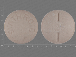 This medication is a Brown Round 7 mm, Tablet with imprint "SYNTHROID;125". It contains 0.125 mg of Levothyroxine sodium 125 ug. It is manufactured by Abbott Laboratories. For details please contact your physician.