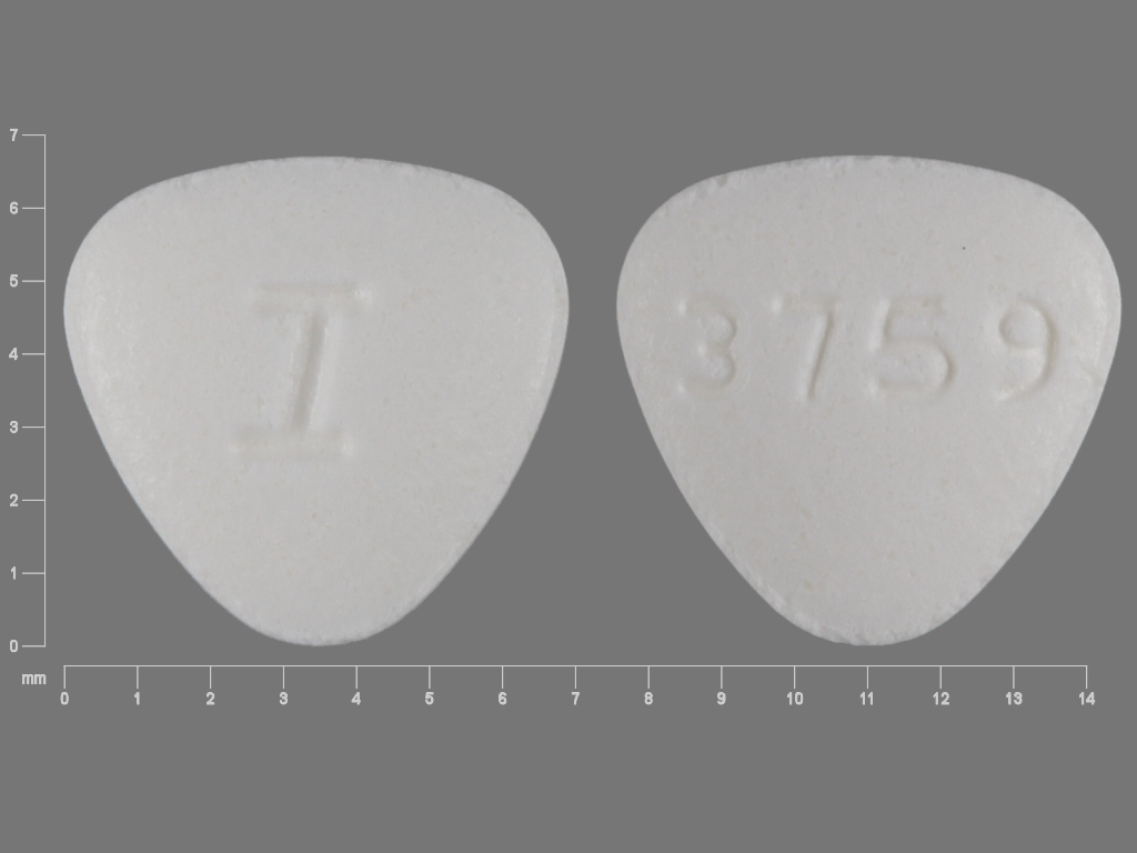 This medication is a White Triangle 7 mm, Tablet with imprint "I;3759". It contains Lisinopril 10 mg; of Lisinopril[lisinopril anhydrous];. This belongs to the Angiotensin converting enzyme inhibitor pharmacologic class. It is manufactured by IVAX Pharmaceuticals, Inc.. For details please contact your physician.